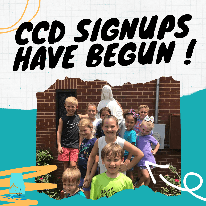 South Mobile Catholic’s CCD Signups for the 2020-2021 school year have begun for grades K-6! 7th – 8th Grade will be considered a part of Frassati Youth. It will continue throughout this month into the first week of September. CCD will begin Sunday, September 13th. All information can be found within the entrance of the Church. Contact Mary Kathryn Ladnier, our Parish Catechetical Leader, for any questions or electronic copies of paperwork.